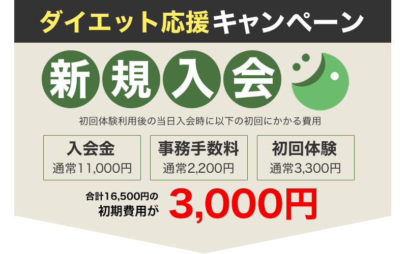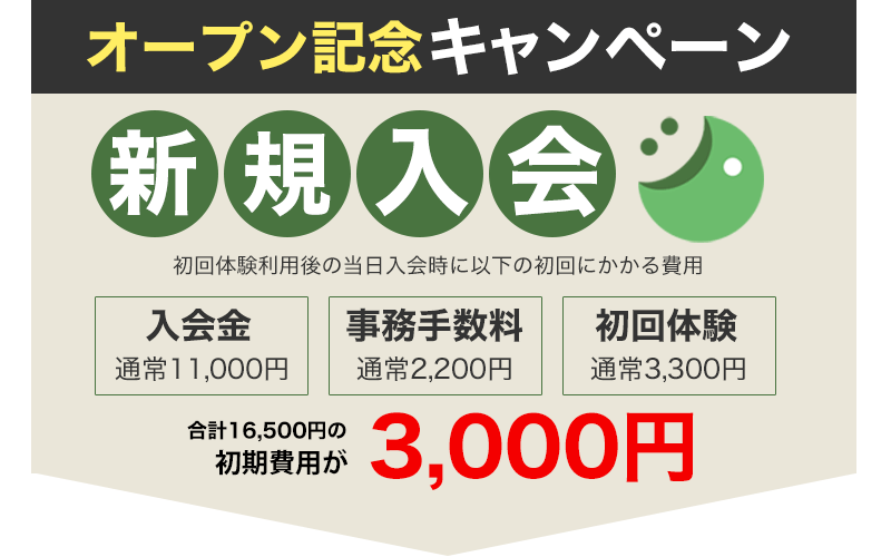 初回体験をしていただき、当日にご入会いただいたお客様に限り、事務手数料と入会金は無料とさせていただきます